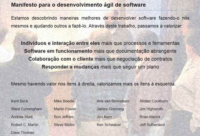 Em Fevereiro de 2001, em uma estação de esqui em Utah, EUA, 17 profissionais que já vinham praticando, publicando e divulgando metodologias rotuladas como “leves”, se reuniram para declarar os pontos em comum que vinham chamando a atenção do mercado por gerarem bons resultados.