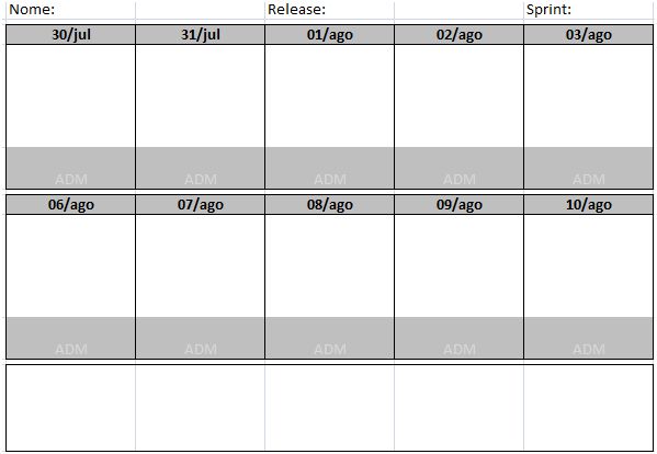 >>> Nesta semana, introduzimos uma Daily Tracking Individual, em que cada integrante passou a ter uma folha (tipo um Risk & Rabisk) com a grade de dias do Sprint sob seu teclado, apropriando nele as informações cotidianas que facilitarão a apropriação e não esquecimento de todos os extras trabalhados.