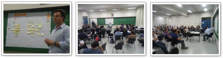 Logo em seguida iniciou módulos do workshop em que trabalhamos para identificar objetivos e requisitos, de negócio, usuário e solução para um site de eventos, que suscitou participação e debate até o final, já 22:00 passadas.