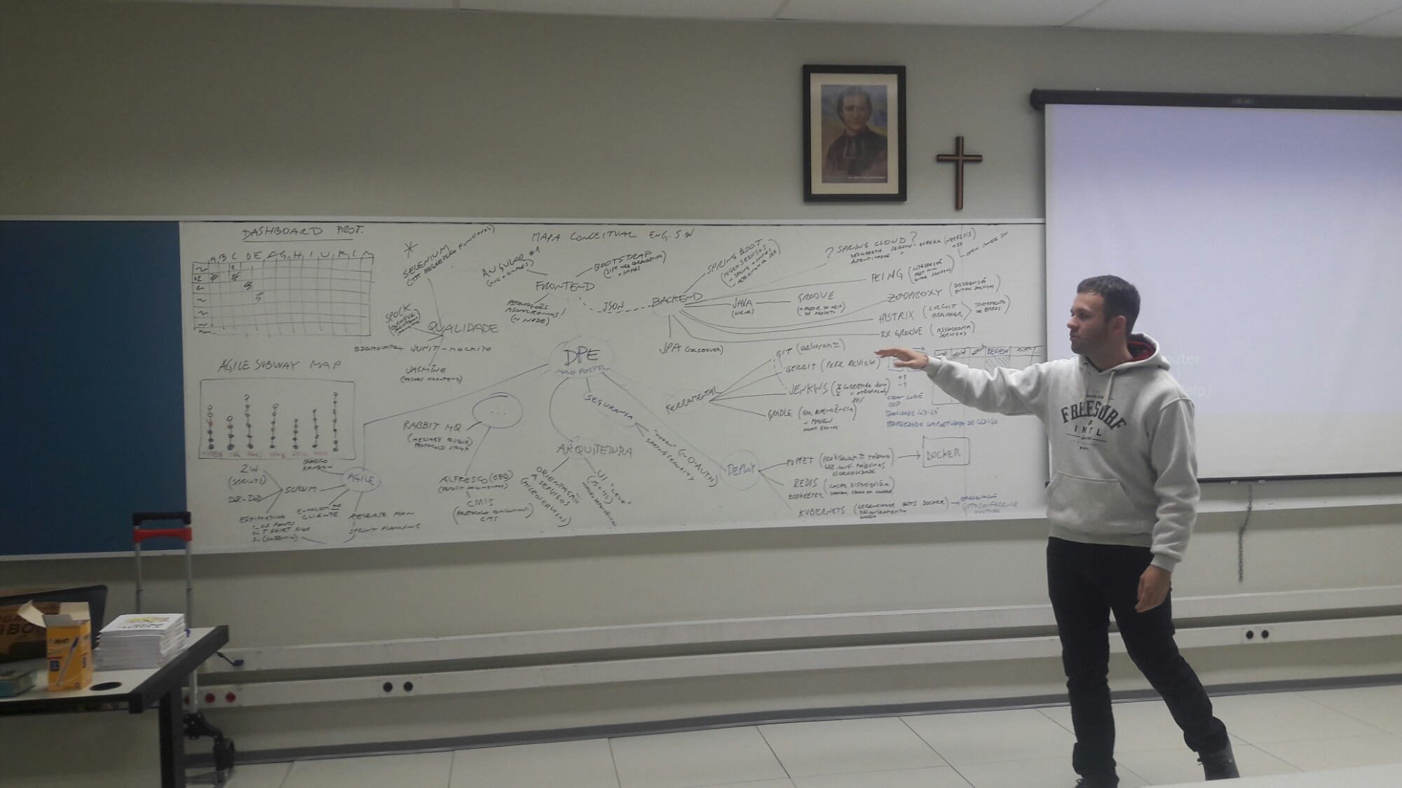 Arquiteto na TI da Defensoria Pública do Estado do RS, foi responsável por estabelecer uma arquitetura que suporte por muitos anos o novo portal do defensor público, uma solução interna para centralização e organização do trabalho de centenas de defensores públicos RS afora. A imagem abaixo é um exercício acadêmico em uma aula de tópicos especiais em Engenharia de SW, seu potencial vai muito além nas mãos de um PMO ou de uma equipe de métodos, processos ou planejamento estratégico.