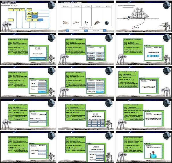E assim como a versão de 8Hrs ou 16Hrs para treinamento de times em empresas, tenho um pacote de histórias do usuário e telas para condução do Release Plan e Retrospectivas com a galera, também simplificadas ao exclusivamente necessário para podermos rodar sprint Zero e dois sprints de construção usando papel, cola, tesoura, régua e hidrocôr, além das escalas em papelão dos caixas eletrônicos: