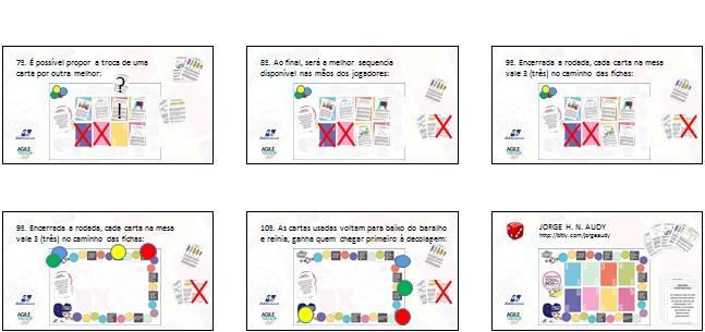 O jogo de início pode parecer complexo, mas para quem já jogou uma rodada é muito simples e divertido, ele possui um tabuleiro, cartas de cenário a serem atendidos, baralho com mais de 70 técnicas e boas práticas, além de um dado. Para o Agile Trends 2017 vou rodar com algumas simplificações, o jogo foi criado para ser jogado em empresas, fomentando sua capacidade absortiva.