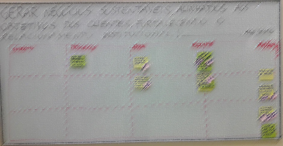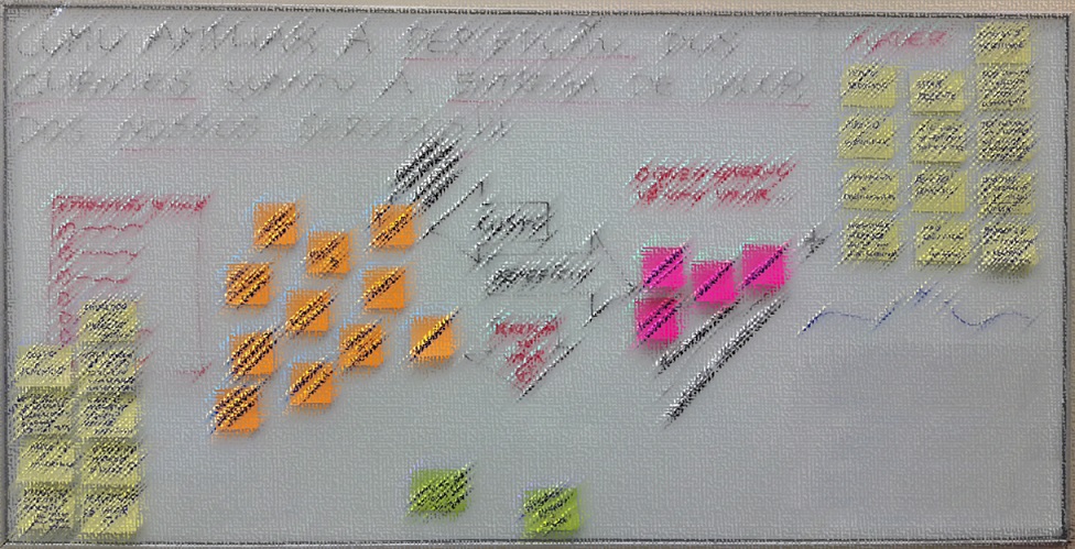 Primeiro a discussão e mapeamento de quais são os custos e quais os benefícios, a todo momento linkando com as duas reuniões anteriores, com o depoimento inicial do cliente e clusters que vinham se formando. Na sequência resgatamos ações pontuadas no final da segunda reunião e novos valores percebidos hoje.