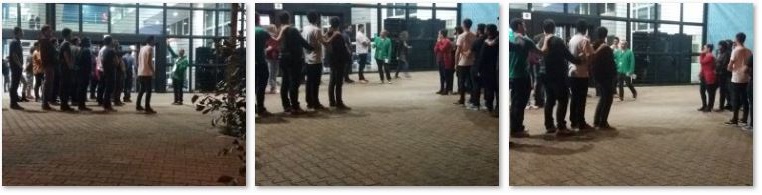 Faltando ainda uma hora e meia para o final, optei por um quebra gelo famoso por produzir muita adrenalina, conhecido como Kaa e Bagheera no escotismo ou Snakes como Team Building Games. Descemos do terceiro para o térreo, fiz um briefing sobre sistemas empurrados e puxados, organizei as filas, expliquei o objetivo, as regras e usei uma tira de papel de 50 cm x 15 cm como rabichos.