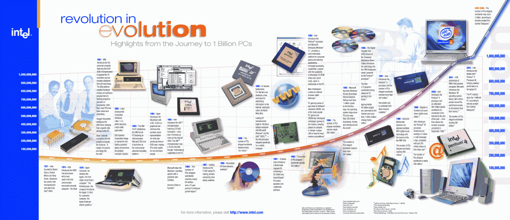 A lei de Moore foi cunhada por um presidente da Intel, em 1965 Gordon Moore afirmou que o poder médio de processamento dos computadores dobraria a cada 18 meses. Quem disse foi o presidente da maior empresa de bolachas do mundo, aquelas finas fatias de cristal de silício usado para fazer microchips.