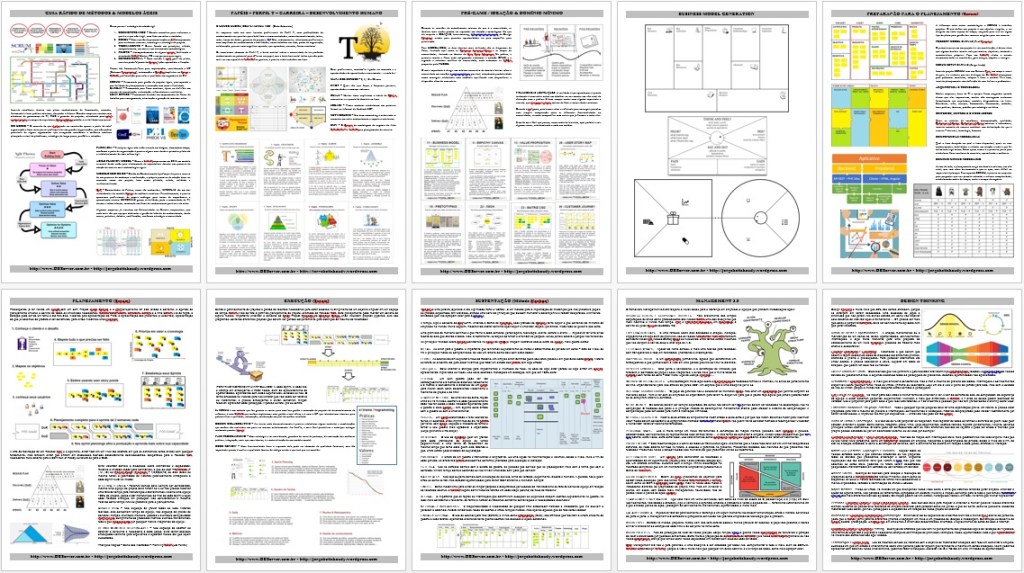 O guia de uma página A3 criado em 2014 foi crescendo (como esperado), a partir de cada livro, artigos, posts, fui incorporando conceitos e lembretes sobre diferentes métodos, frameworks e propostas, chegando a 12 páginas A3 que estão sempre comigo e compartilho com quem interajo em projetos pelo meu link do pdf completo:
