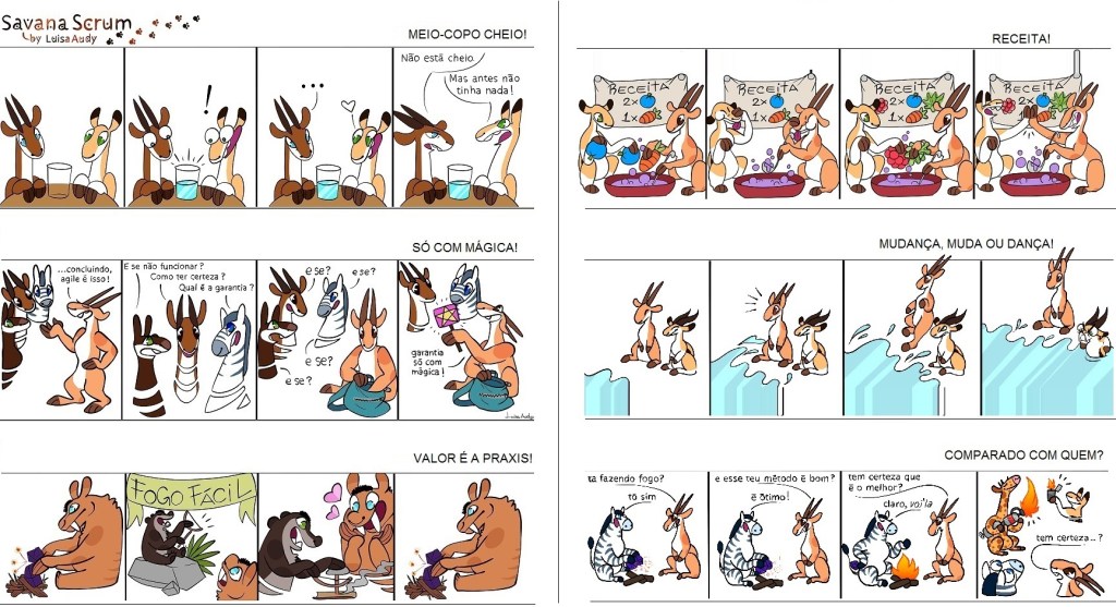 Em 2017, também com minha filha é claro, lançamos as tirinhas do SAVANA SCRUM para falar das idiossincrasias e aprendizados ágeis na forma de personagens lúdicos e divertidos, com grande potencial de crescimento.