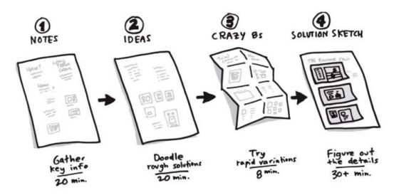 A referência que recomendo e chamo a atenção é o site https://designsprintkit.withgoogle.com/methods/sketch/crazy-8s/