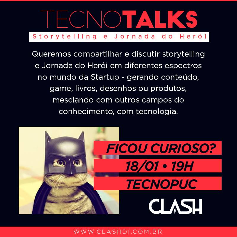 A programação do dia 18/01 a noite na sala 204 e 206 do 99A do TecnoPUC é uma proposta de start criativo para 2018. Para amantes de livros, filmes, quadrinhos, games, todo tipo de narrativa de histórias, aquelas boas, que geram empatia com seus personagens.