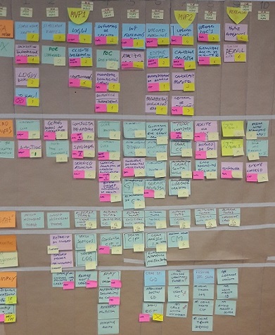 Com o passar do tempo nosso Release Plan muda, algumas coisas se antecipam, outras se postergam, algumas entram e outras saem. O Planejamento é um guia, fica registrado em selos nos postits o que mudou, cores, novidades, eu até valorizo isso, mas o mais importante é uma visão holística por todos, nada é só o hoje, porque o desafio do tempo, custo e escopo de negócio é de todos. Sem uma visão ampla o suficiente, o time não poderá criar uma visão ampla e colaborar a cada passo.