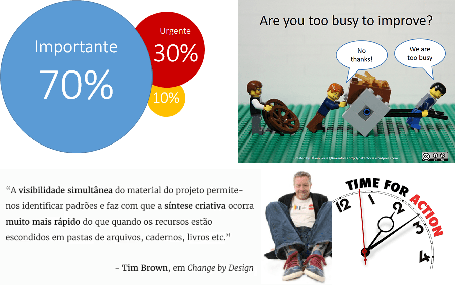 De nada adianta um processo bem desenhado, otimizado, produtivo, se as pessoas envolvidas não conseguem gerir bem o seu tempo. Mesmo um processo ineficiente, se tiver pessoas engajadas e competentes na gestão do seu tempo, contornariam muitas de suas limitações.