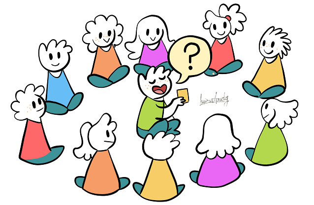DICA: É preciso combinar que as perguntas devem ser inteligentes, o que quer dizer não serem tão óbvias, dentro do possível, interessantes ou curiosas, inesperadas, mas respeitando os colegas, sem correr o risco de ser chula ou inconveniente. É para ser divertido!