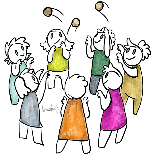Este jogo eu conheci em um workshop de treinamento de lideranças, onde fizemos um grande círculo e juntos estabelecemos nossa velocidade enquanto passávamos duas ou três bolinhas de látex um para o outro.