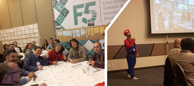 Uma tarde ímpar no F5, com 5 trilhas e em uma delas eu e o Eduardo Meira Peres com uma oficina de Design Thinking com The crash Course e Toolbox na educação, com a presença de todas as grandes redes de ensino … clientes e parceiros.