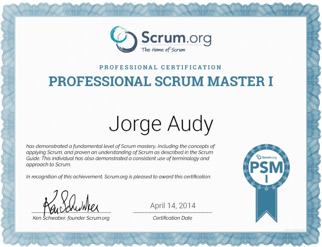 Há alguns anos atrás fui aprovado na PSM I por solicitação da empresa, era importante ter alguma certificação oficial na mão. Optei pela PSM I da Scrum.org ao custo de US$100 na época, pois a Scrum Alliance e PMI eram bem mais caros. De lá para cá o mercado de certificações recebeu de forma consistente a Scrum Study, a EXIM, etc.