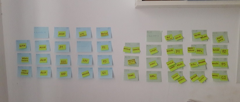 Em 2015 quando comecei a dar aulas na PUCRS eu fiquei incomodado, estava acostumado a planejar cursos e workshops no próprio PPTX ou Prezi, mas tinham no máximo 16Hrs de duração distribuidos em alguns dias em sequência. Então comecei a usar a parede do escritório de casa para mapear dia-a-dia em postits a distribuição da matéria em aula com postits adicionais sobrepostos com detalhes sobre jogos e técnicas em especial … funcionava muito bem, mas queria muito poder ter comigo …