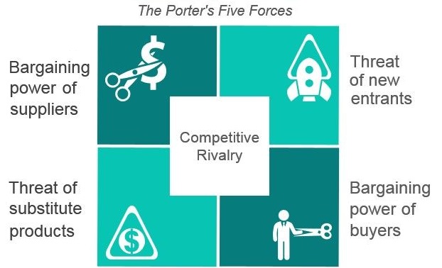 Michael Porter propôs uma análise de negócio e mercado através de uma avaliação das forças contextuais que podem afetar a capacidade de uma empresa ganhar e reter seus clientes. Assim, propôs uma análise do microambiente, em um mapa de intensidade competitiva, diretamente relacionada à lucratividade: Poder de negociação dos clientes – Tamanho do mercado, Dimensionamento por compra, Diferenciais entre competidores, Sensibilidade ao preço, Custo e habilidade na troca; Poder de negociação dos fornecedores – N° e porte dos fornecedores, Singularidade do produto/serviço, Custo da mudança, Habilidade em trocar; Risco de novos competidores – Tempo para entrada de novos, Custo de entrada, Economia de escala, Barreiras de conhecimento para entrada, Barreiras tecnológicas; Risco de substitutos – Tendências de mercado, Probabilidade de inovação, Riscos tecnológicos e (In)satisfação com a solução atual; Competitividade do segmento – Número de competidores, Competências essenciais, Diferencial competitivos, Variação de preços, Lealdade dos clientes.