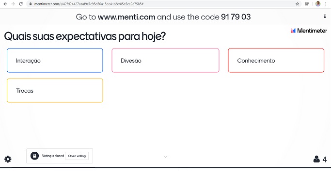 A Mentimeter é uma empresa sueca com sede em Estocolmo com um aplicativo onde obtemos informações em tempo real de equipes remotas e alunos on-line com pesquisas ao vivo, questionários, nuvens de palavras, perguntas e respostas e muito mais. O Mentimeter, assim como o Kahoot tem muitas opções e parametrizações bloqueadas na versão free, mas ambos pode importar e exportar dados – https://www.mentimeter.com/
