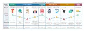Só vejo esses diagramas formatados e bonitinhos, com poucos passos e espaço sobrando, quando procuro por journeys e blueprints no Google, na prática o que sempre vejo são mapas densos e assimétricos, muitos postits, linhas, colunas, cores, tamanhos, … Quando reunidos, grupos de discussão, modelagem em meio a debates, divergência e convergência, com alta densidade de postits, movimentação, trocas, mudanças, acho um desperdício se nos comprometermos com a forma mais que o conteúdo.