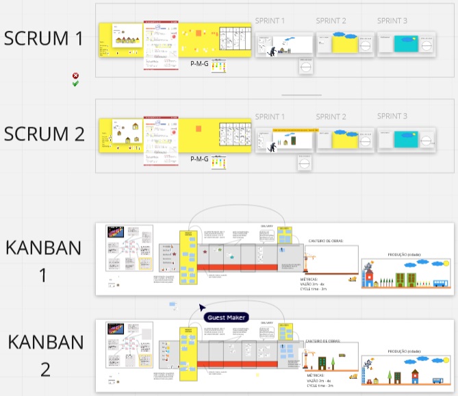 Rolou mais um City Building Game em sala de aula virtual, em três noites de sextas-feiras, dia da minha aula com quatro créditos de GP na Politécnica da PUCRS. Inicia com uma aula tendo um overview sobre Agile, Scrum, Kanban e Escala, uma introdução a valores, princípios e pontos em comum.