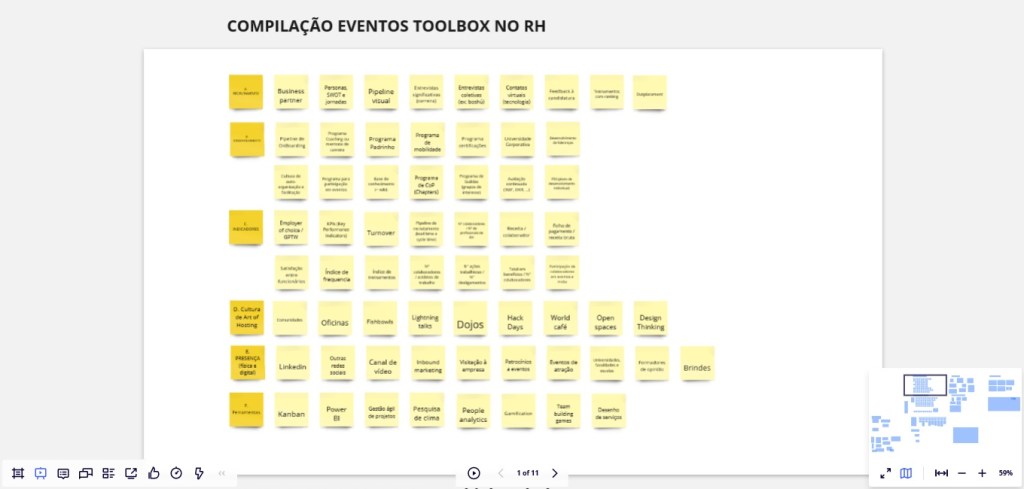Toda a edição de frames serve para uma eventual exportação para PDF e para impressão, o que é um recurso muito útil. Ao exportar para PDF e depois imprimir, o MIRO utiliza toda a sua edição e formatação dos frames como base … muito útil se necessário formalização pós-evento.