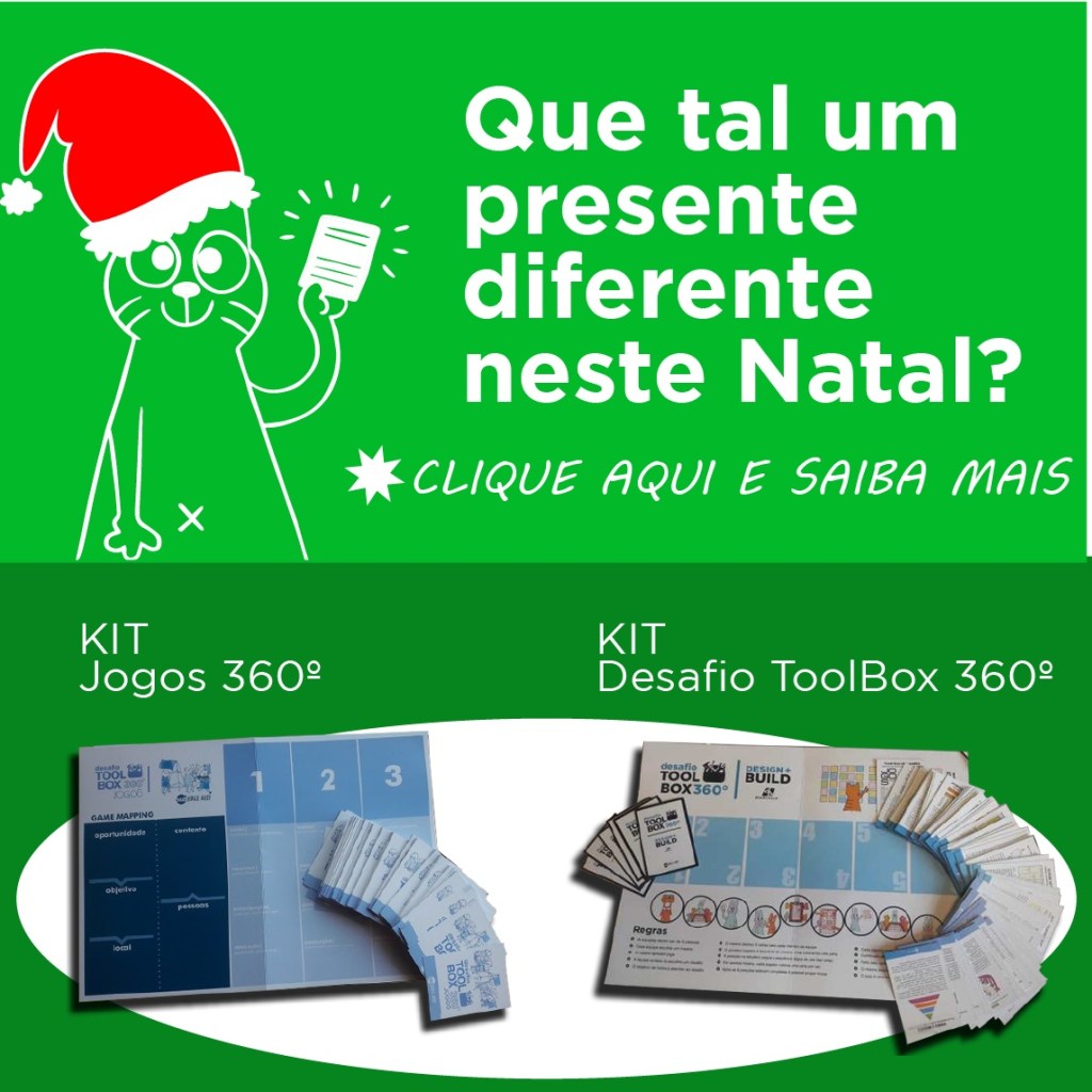 Que tal comprar e mandar entregar um presente de Natal com kits especiais? O valor é R$100 um e R$180 ambos. Um é o de Toolbox com 130 técnicas mais conhecidas para o trabalho, projetos e operações, o outro kit é o de Jogos com 130 quebra-gelos, aquecimentos e didáticos.