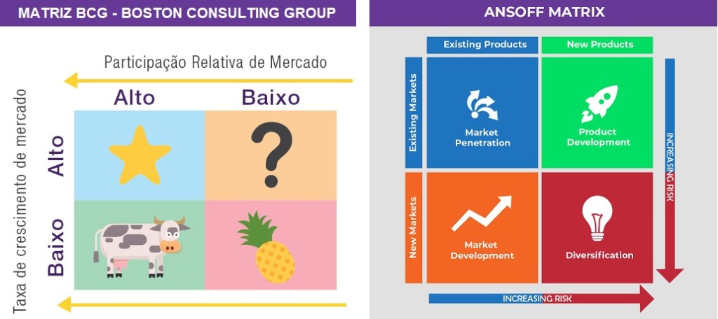 Tendo nosso mapeamento de negócio, portfólio de produtos e serviços, usaremos abordagens como as propostas pelas matrizes BCG e ANSOFF para uma leitura de PMF. É vital percebermos o tamanho do mercado, sua participação e performance, tendência e latência.