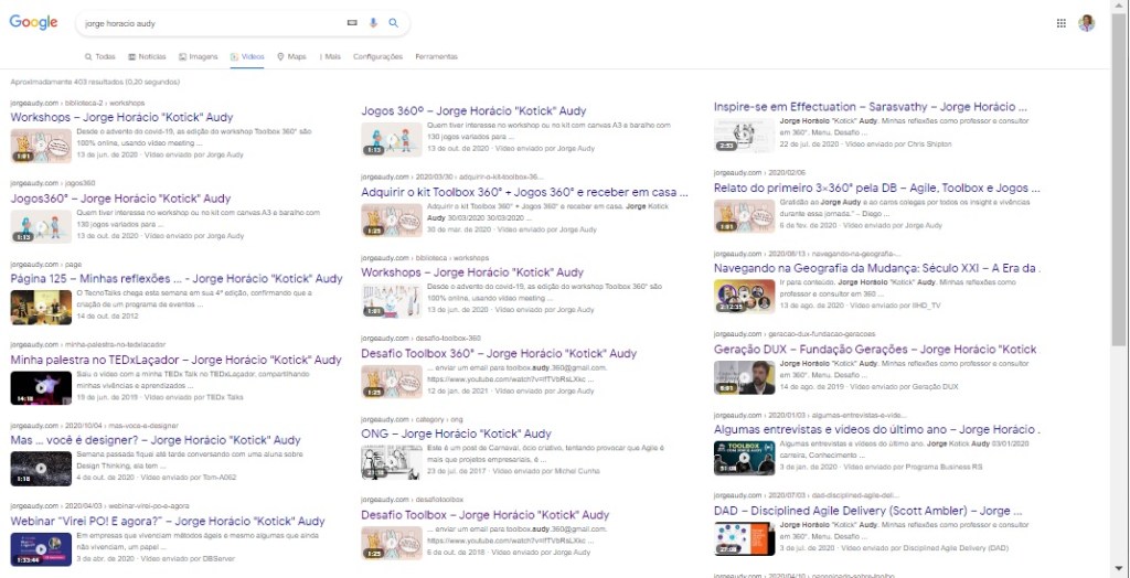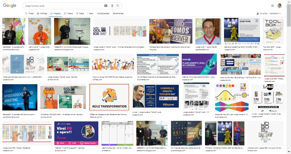 - Se procurar seu nome no Google, o que aparece? Links, imagens, vídeos, …