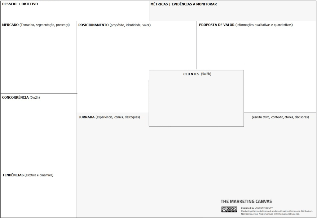 Como sempre, não resisto a cruzar conceitos, então editei o canvas para poder tirar proveito do fundamento de uma boa jornada, que é enriquecê-la com informações, que vejo ao lado em conversação. Para tornar isso possível, abri mais espaço e fundi conversação e jornada, subindo métrica para o topo, ao lado de objetivos.