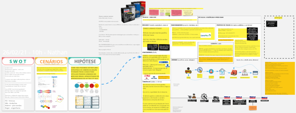 Não se apegue a forma mais que ao conteúdo, e não fique restrito às celulas do canvas, permita debates e informações adicionais se tiverem valor. a imagem abaixo tem a esquerda uma 1ª reunião de uma hora e meia em que definimos a necessidade de uma análise estratégica de mercado, mais a direita o Marketing Canvas após reunião de três horas..