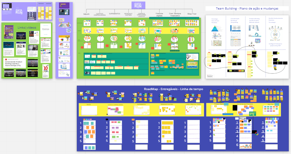 Há momentos de partilha, onde cada squad compartilha através de um relato de 5 minutos com os principais pontos discutidos e modelados, provocando uma ‘polinização cruzada’, reflexões e novas percepções a medida que vamos evoluindo. Como resultado, team building, roadmap e planos de ação.