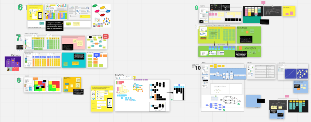 Usualmente os conteúdos são extensos e é preciso avaliar e decidir se manteremos tudo em um único board do Miro ou em mais de um, uma disciplina de GP, por exemplo, eu divido em três boards. Isso é importante para os alunos ou participantes que eventualmente acessam em conexões mais lentas ou pelo celular.