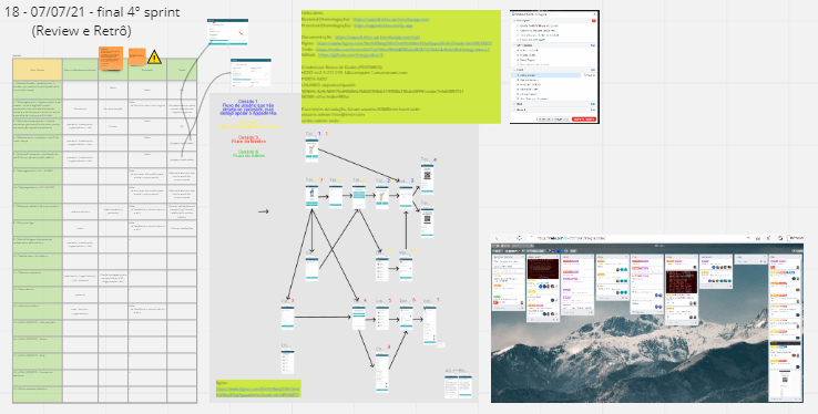 AULA 3 – Resgatamos os canvas iniciados na primeira aula e a partir dele estabelecemos um grande debate de Team Building, quem é quem, em que papel cada um pode mais contribuir (3 negósios, 3 UX, 2 SQA, 4 Fronts e 4 backs), o que queremos e não queremos enquanto time e, com muita atenção, um processo de trabalho com sprints de 9Hrs (três aulas = três semanas), trabalho síncrono nas quartas a noite e em função disso a nossa agenda até o final do semestre com quatro sprints seguindo scrumban, em fluxo contínuo.