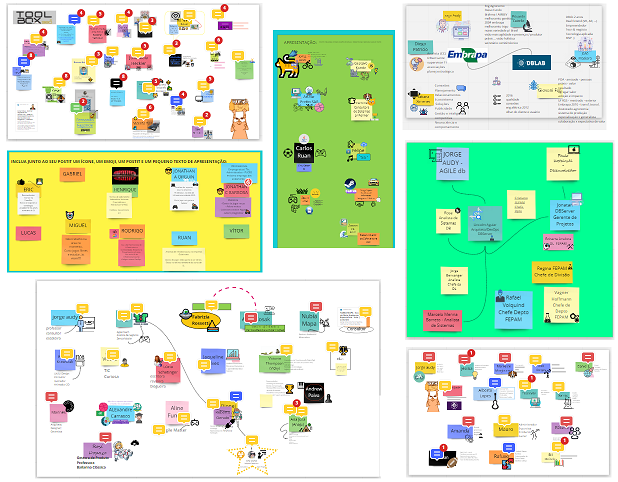 Dê espaço, não tenha pressa demais para acabar, é para ser descontraído e divertido. Uma variação é quando eu apresento alguém da turma apenas tentando entender as informações em texto e visuais que colocou no Miro, ao interagir e terminar, esta pessoa escolhe outra aleatoriamente e a apresenta, assim por diante até chegar ao último, que me apresentará … se temos um pouco mais de tempo, assim gera boas interações.