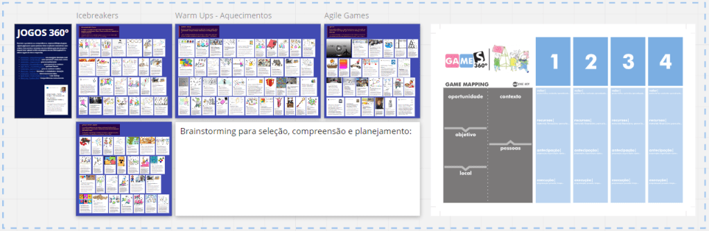 Após compartilhar meu quadro Toolbox com poucas mudanças, tive uma epifania, porque não usar as thumbs geradas pelo próprio Miro a partir de um post pertinente a cada jogo, tema, técnica ou boa prática. O resultado ficou muito melhor do que a forma que eu usava até aqui, no caso do Jogos, incluindo o canvas.
