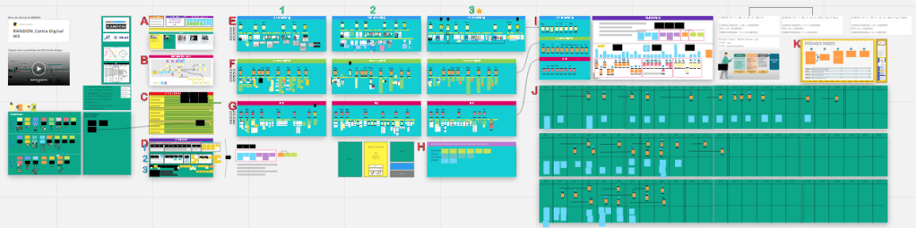 A e B) Recebemos um resumo completo, um showcase sobre a oficina de Design que em meio a dezenas de possibilidades, mapeou aquilo que era de mais relevante para Conta, PIX e Onboarding. Revisitamos as personas e jornadas construídas;