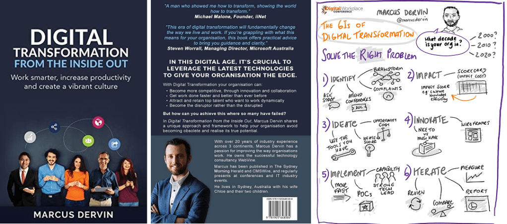 “Transformação digital de dentro para fora: trabalhe de maneira mais inteligente, aumente a produtividade e crie uma cultura vibrante”, por Marcus Dervin. O livro propõe prismas de transformação sustentáveis, evolutivas, com melhor ambiente, processos eficientes, colaborativos e resultados de negócios.