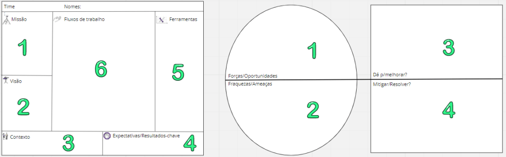 Uma sequência básica, sujeita a adaptação, é um role model customizado e um value proposition também customizado, posto que o objetivo é iniciar por construir uma auto-imagem do time por ele próprio (missão, visão, contexto atual, KR, ferramental e fluxos) e então discutir oportunidades de melhoria, destacando itens que compõem o plano de ação.