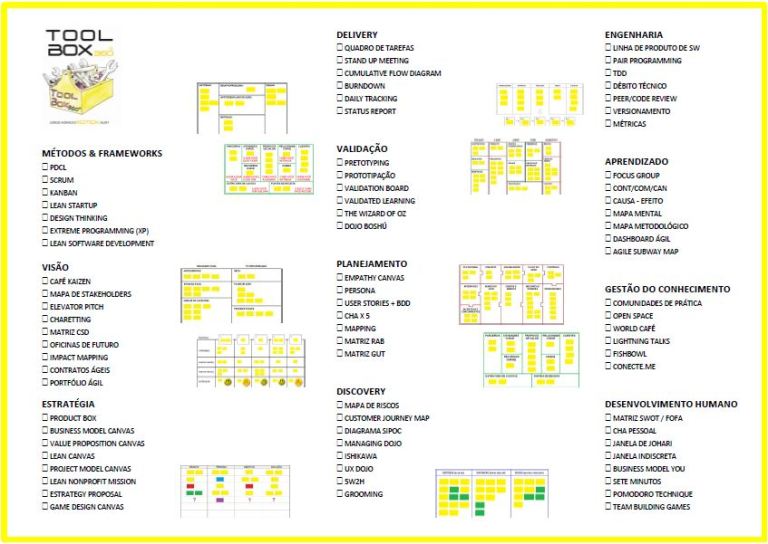 Um livro contendo mais de 70 técnicas e boas práticas variadas, originado em uma cuidadosa curadoria e lançado em sua primeira edição em 2015. Organizado de forma a instigar a experimentação de diferentes métodos e técnicas, desde estratégia, modelagem, validação, planejamento, construção a gestão do conhecimento.