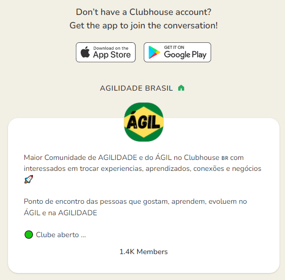 Entre para a comunidade Agilidade Brasil no ClubHouse – https://bit.ly/agilidade-brasil