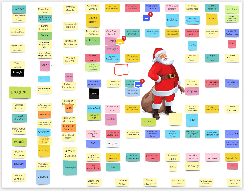 O início já é um clássico, um mini-curso Miro onde cada um entra, navega, cria postits e conhece um pouco a ferramenta, um mínimo para que em grupos os registros em postits aconteçam. É uma dinâmica de 15 a 20 minutos que se encarrega de dar autonomia para a galera.