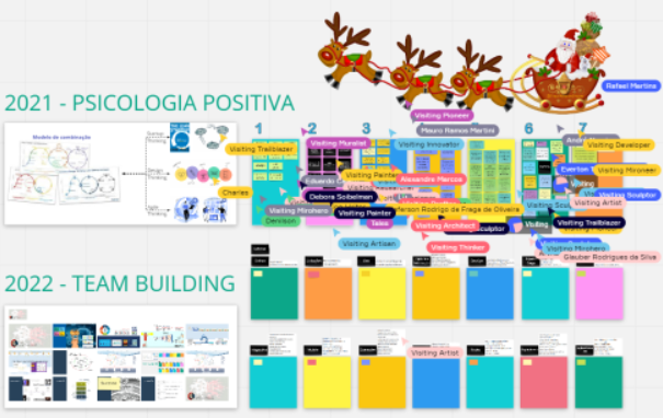 Hoje usei o Miro em uma facilitação com quase 70 pessoas interagindo ao mesmo tempo (imagem abaixo), como um enxame de cursores criando postits e conversando via Zoom. Meu jogo Toolbox 360° digital pode ter até 10 jogadores ao mesmo tempo no mesmo jogo em tempo real. Neste exato momento estou editando no wordpress, uma ferramenta WYSIWYG até onde é possível.