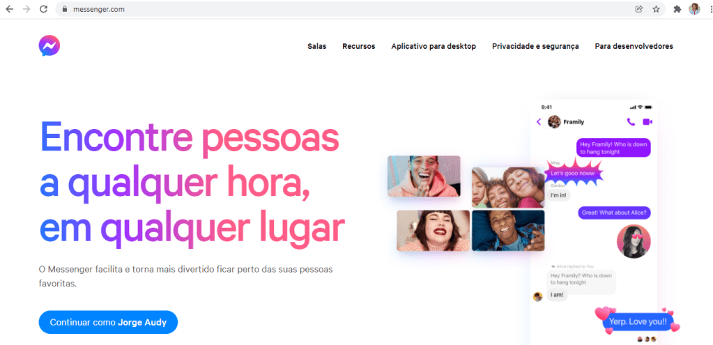 O Messenger pode tanto ser acessado a partir do próprio Facebook no desktop, quanto em um solução separada destinado a ele para web ou app. Em www.messenger.com você consegue acessar o mensageiro sem precisar passar pelo feed de notícias ou em qualquer loja de aplicativos para celular.