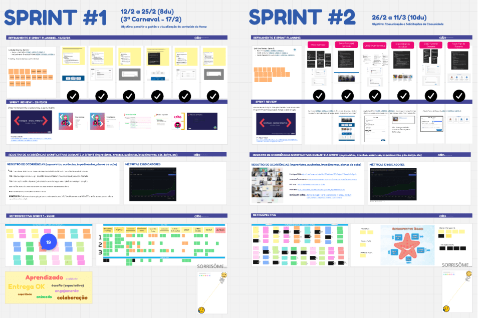 - Diário de bordo (registro de ocorrências, impedimentos e métricas);