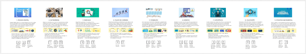 Criei no Miro uma dinâmica que se propõe a demonstrar uma Jornada para discutir nossas mediadores e moderadores para potencializar nosso planejamento de carreira. Criei no Miro, mas já fiz presencial, onde distribui para cada participante do treinamento uma folha com a escala de 1 a 20 e espaço para registro do plano de ação.