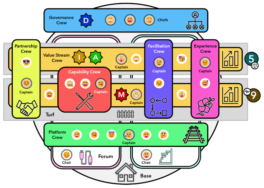 7. CAPITÃES: Cada equipe tem um Capitão, com perfil alinhado a responsabilidade e domínio da própria equipe (fluxo de valor, facilitação, experiência, plataforma, etc). Quando necessário, questões não resolvidas pela equipe e pelo seu capitão, são endereçadas a Equipe de Governança.