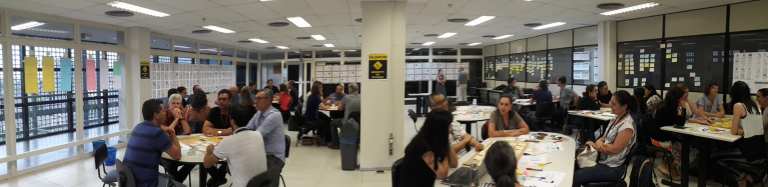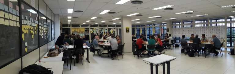 O privilégio de interagir com mais de 50 professores da Politécnica, colegas e amigos dos cursos da engenharia, arquitetura e informática. Uma sequência de dinâmicas 100% horizontais, auto-organizadas, descontraídas … que geraram um mapa inicial de técnicas e estabeleceram metas. Rolou um papo inicial sobre o conceito e oportunidades, seguido de um super-warm up que adoro, o dos bonecos, que se transformaram em três personas em um exercício de empatia sobre o que esperam e pensam sobre o semestre que em mais um mês se inicia. Depois debates em grupos sobre aulas, técnicas e boas práticas, com a escolha e apresentação daquelas que cada grupo acreditava serem as mais impactantes e clusterização de todas.