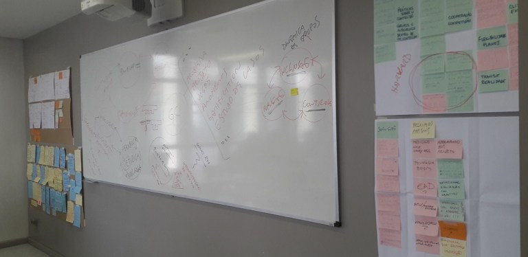 Fiquei sem as fotos dos murais de cada grupo, assim que receber as fotos, postarei aqui para registro histórico – Metodologias ativas, Andragogia, inversão propositiva, jogos pedagógicos, gamefication, dinâmicas de grupos, Agile, avaliação baseada em aprendizados e não padronização, entre outros tantos tópicos instigantes. O objetivo era compartilhamento, crescimento colaborativo e a gestão do conhecimento auto-organizado, valorizando mais que metodologia, o aproveitamento e mixagem de várias abordagens para criar aulas mais ativas.