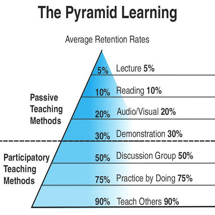 Um modelo a ser conhecido é a pirâmide de aprendizagem de William Glasser, psiquiatra americano que curiosamente desenvolveu idéias de W. Edwards Deming, conhecidas como terapia de realidade e teoria de escolha, aplicadas à educação, onde vemos o professor como um facilitador.