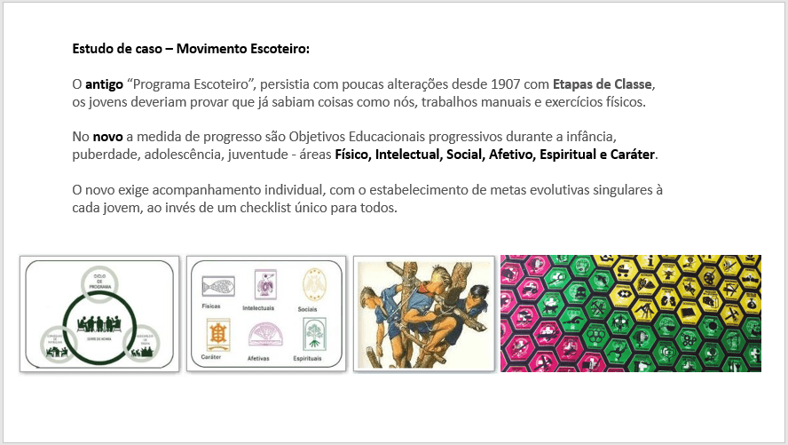 - Uma visão de progressão durante o semestre, com autonomia para ir além e apoiando os que mais precisam;